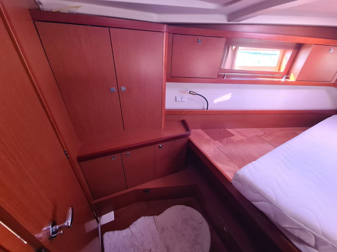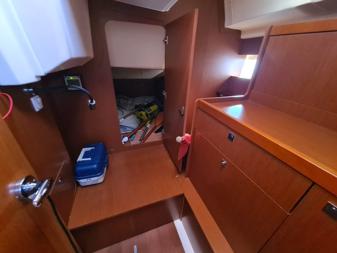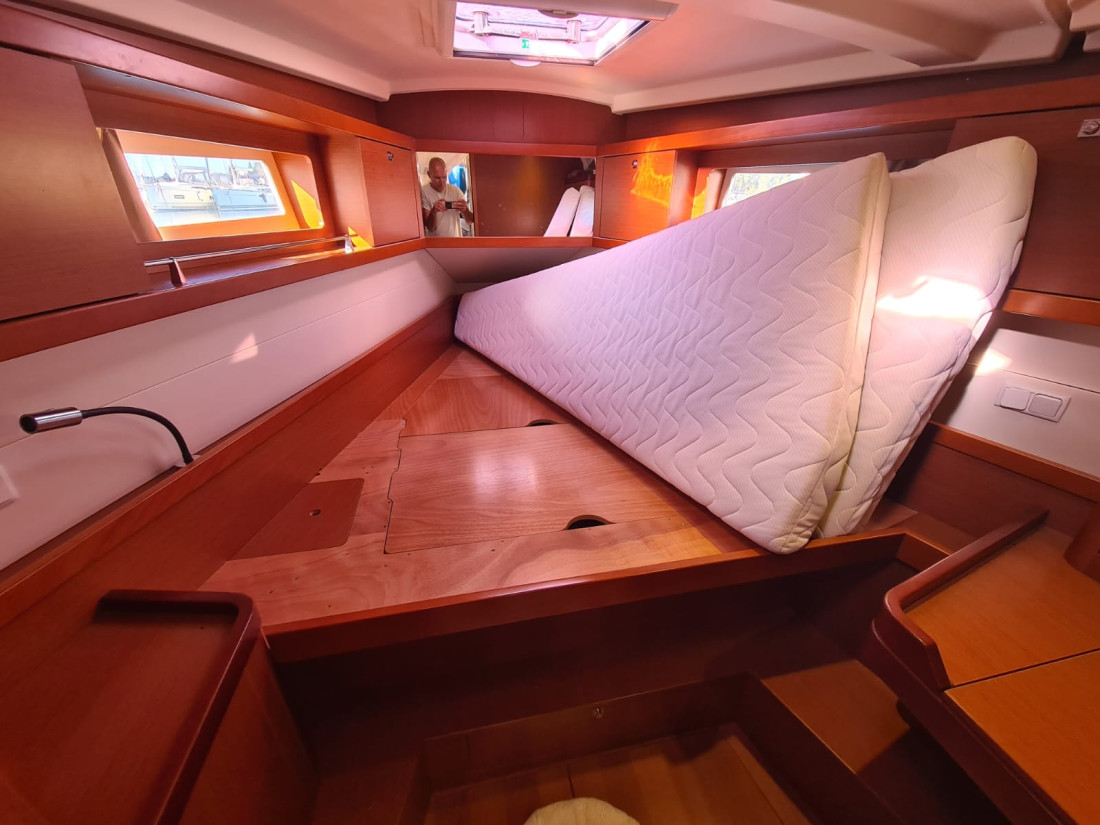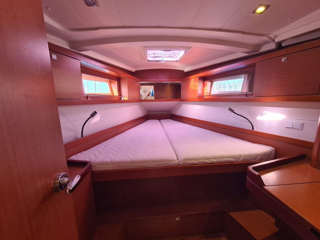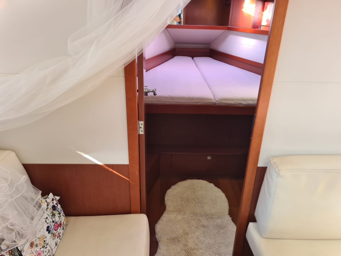 Eladó egy kivételes állapotban lévő 2013-as Beneteau Oceanis 41, amely tökéletes választás bárkinek, aki megbízható, elegáns és jól felszerelt túravitorlást keres a Földközi-tengerre vagy charter célra. A hajó két kabinnal és egy fürdővel rendelkezik, tágas belső térrel és praktikus elrendezéssel, ideális hosszabb utakhoz vagy családi nyaralásokhoz. Meghajtásáról egy Yanmar 3JH5E dízelmotor gondoskodik, amely mindössze 1603 motórórát futott, és bow thruster is segíti a könnyed manőverezést kikötéskor. A fedélzeten teak burkolat, elektromos csörlők, nagyméretű cockpit asztal és kiváló minőségű navigációs rendszer (SIMRAD NSS12, autopilot, AIS) emelik a kényelmet és biztonságot. A hajó francia lobogó alatt hajózik, rendszeresen karbantartott, charterüzemben volt, de kíméletesen használták. Megtekinthető Horvátországban, teljes felszereltséggel, azonnal elérhető.