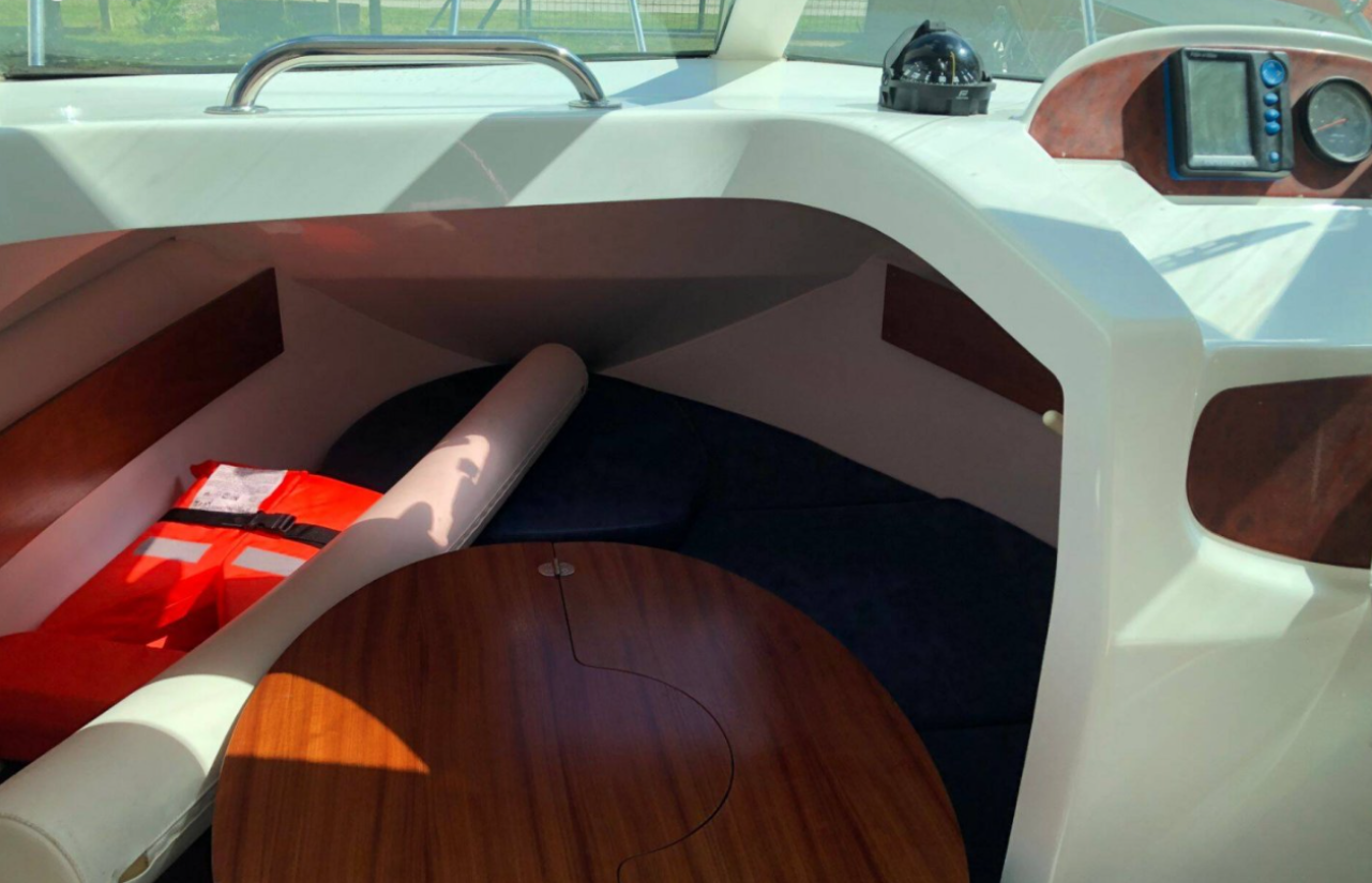 A hajó Suzuki 115 lóerős, 4 ütemű motorral szerelt, amely erős, megbízható és gazdaságos üzemeltetést biztosít. Mérete és kialakítása miatt rendkívül stabil és jól kezelhető, ugyanakkor kellően dinamikus, így horgászatra, túrázásra és családi kikapcsolódásra egyaránt ideális. A fedélzet tágas, praktikus elrendezésű, kompromisszumok nélkül használható.