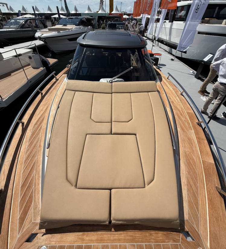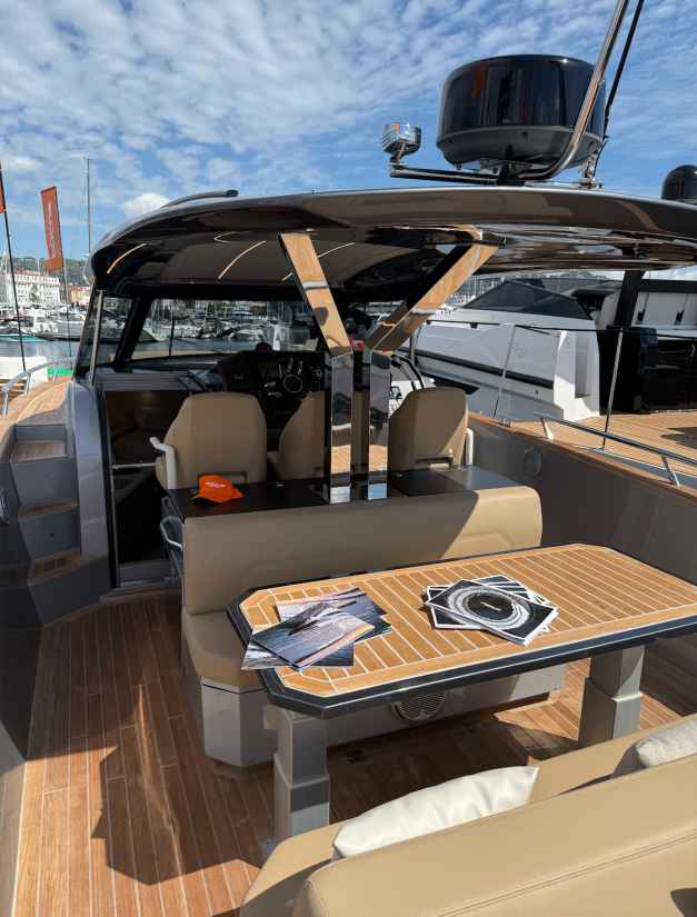 A Focus Forza 37 egy letisztult formavilágú, modern sporthajó, amely a prémium minőség és a funkcionális térhasználat tökéletes egyensúlyát képviseli. A tágas cockpit kialakítás ergonomikus ülésrendszerrel és integrált étkezőasztallal biztosítja a kényelmes időtöltést a fedélzeten. A hajó külsejét a fekete zselés felület és a teakfa burkolat elegáns kombinációja határozza meg, míg a belső tér világos faburkolata és rejtett LED világítása harmonikus, luxus hatást kelt.
